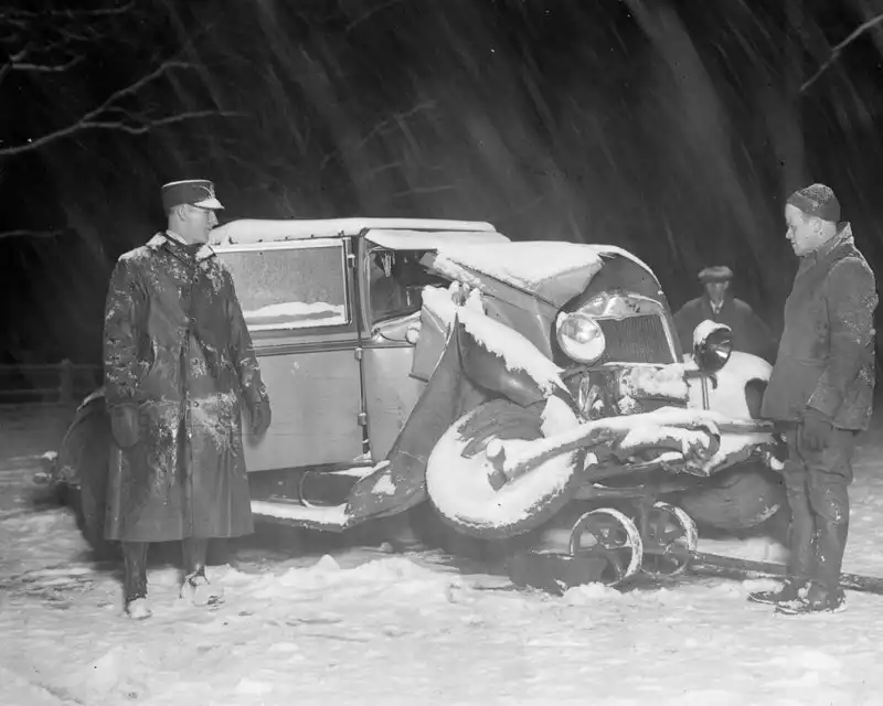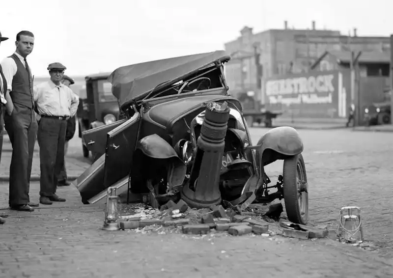 В прошлом веке было мало машин, но всё равно они умудрялись попадать в аварии. В наше время авария - обычное дело, но в 30-х годах прошлого столетия это было событие, которое освещали все местные газеты, и конечно же делали фотографии.