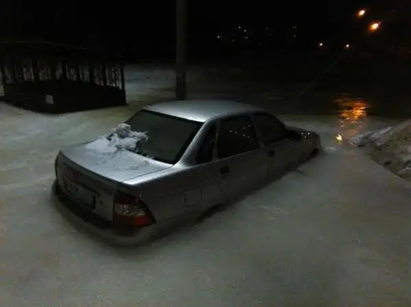 С наступлением холодов владельцам автомобилей нужно тщательней выбирать место для парковки своих транспортных средств. Нередко в морозы прорывается очередная гнилая коммунальная труба, и вода, заливая низменные места, сковывается морозом в лед, запирая в своих тисках все припаркованные автомобили.