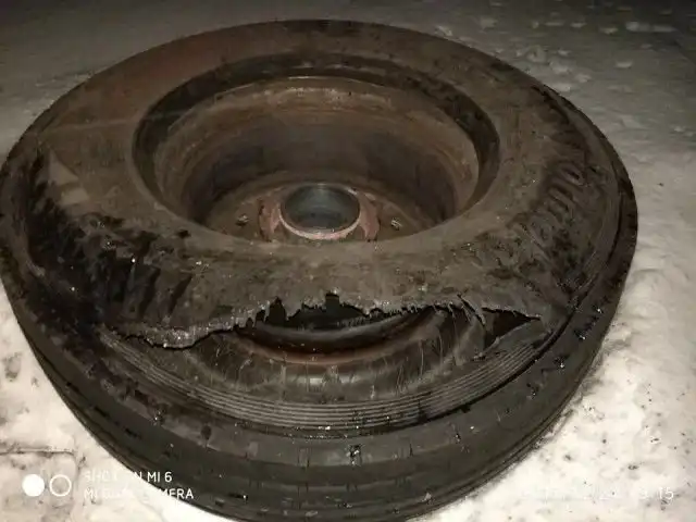 Вечером 24 декабря на трассе под Смоленском вылетевшее колесо прицепа фуры врезалось в легковой автомобиль, двигавшийся по встречной полосе. В результате аварии машина приняла основной удар на себя, все системы безопасности сработали идеально и пассажиры (семейная пара с двумя маленькими детьми) не пострадали. Водитель грузовика не остановился, в отношении него возбуждено уголовное дело. Пострадавший оформляет документы на страховку и делится снимками последствий ДТП.