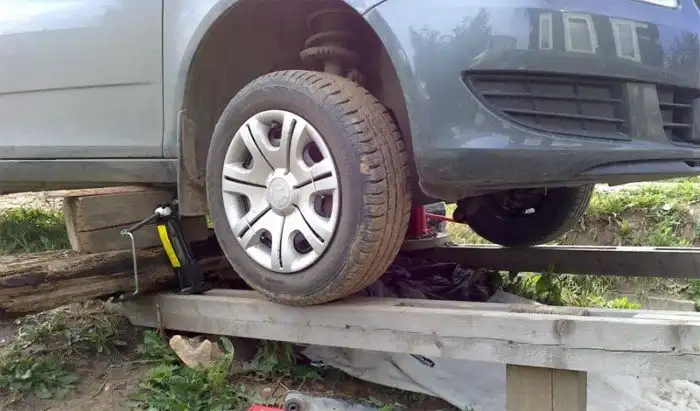 Чтобы проверить колеса на предмет люфта, каждое из них нужно поднять на домкрат и попробовать раскачать, при заблокированном руле. Малейший люфт будет показывать неисправность подвески, или рулевого колеса.