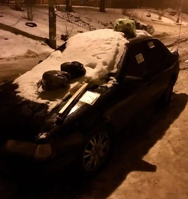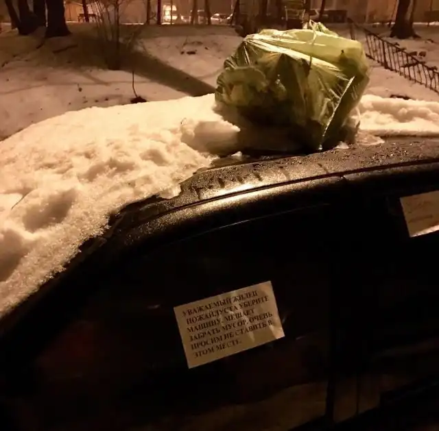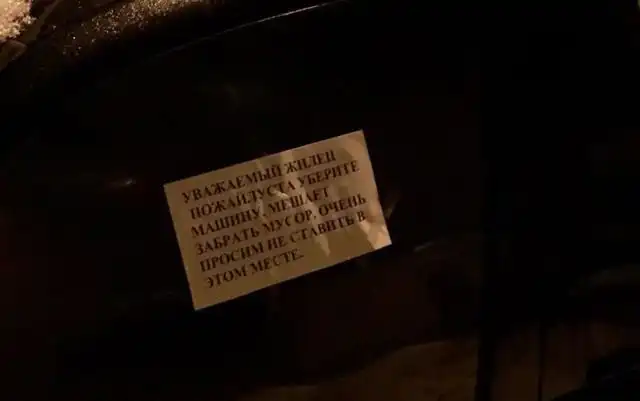 Водитель припарковал свой автомобиль так, что он мешал вывезти мусор, а потому его решили немного наказать, чтобы в будущем отбить желание оставлять авто в этом месте.