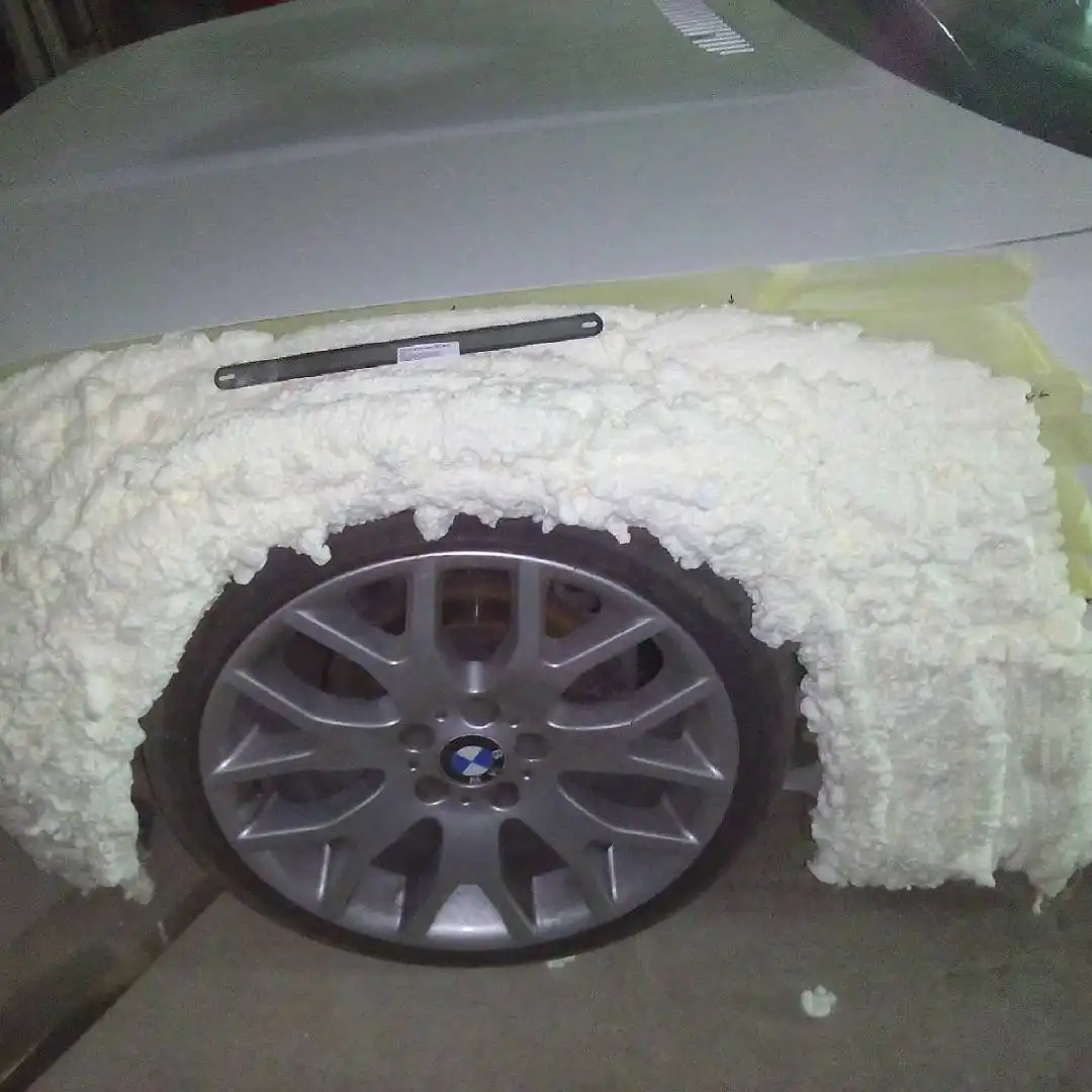 Теперь пройдем по БМВ E46, там вообще космос какой-то. Тут с помощью пены удалось расширить арки, уже есть готовый результат.