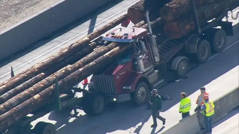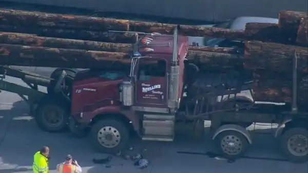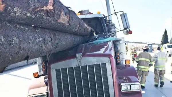 В первый день весны на калифорнийском шоссе №5 произошло серьезное ДТП: здоровенные бревна из лесозаготовительной машины прошили насквозь кабину следующего за ней лесовоза. Находившийся за рулем 63-летний мужчина получил серьезные травмы, за его жизнь борются врачи.