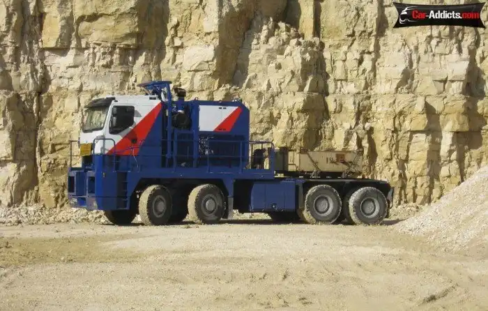 Встретить такие гигантские тягачи можно преимущественно в ЮАР. Машина считается одной из самых больших в своем классе. Каждая буквально размером с автобус. Эта машина даже попала в Книгу рекордов Гиннеса благодаря своим невероятным размерам. Машина занимается перевозкой сверхтяжелых грузов массой до 500 тонн. Главным образом это оборудование для электростанций.
