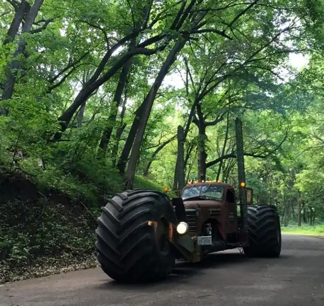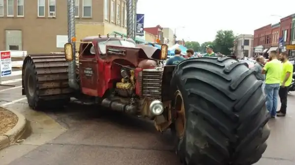 Это не простой шоу-кар, а вполне реальный драгстер Verzani Farms Rat Rod, построенный компанией из американского штата Небраска на базе ретро грузовика. Трехколесный автомобиль оснащен мощным дизельным двигателем, обеспечивающем ему достойную динамику. Однако эта машина чаще всего посещает различные автовыставки, где пользуется особым успехом.