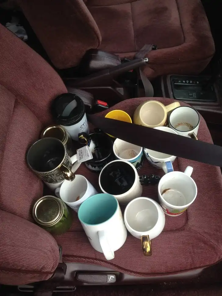 13. «Все кружки, которые обнаружила подруга при уборке в своей машине»