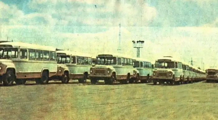 Площадка готовой продукции Курганского автобусного завода. Тираж выпускаемых этим заводом автобусов в советские годы был одним из самых больших в мире.