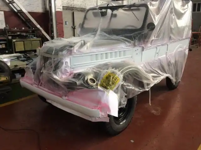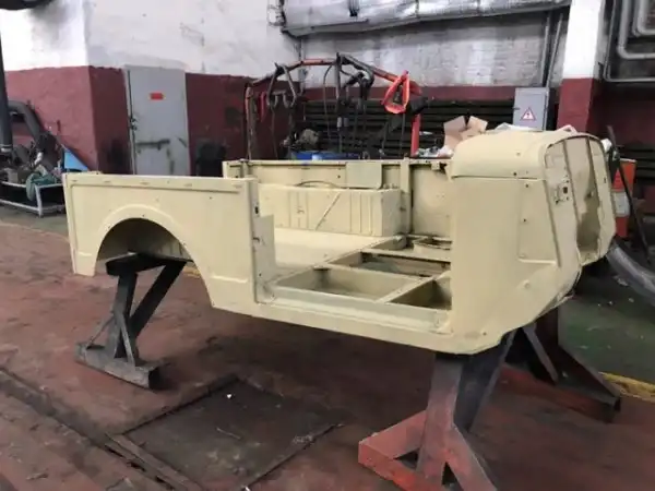 По словам автора этого поста, данный автомобиль был куплен в Москве, и на момент покупки он даже находился на ходу. По задумке его владельца, мастерская должна была выполнить полную реставрацию не только кузова, но и всех основных узлов. Автомобиль полностью разобрали, включая КПП, ДВС и мосты. Все детали ходовой части были заменены на новые, пороги были переварены, а кузов перекрашен. По задумке автора, проект должен быть стать тематическим и с раскраской "Комендатуры". Смотрим далее, что из этого вышло.