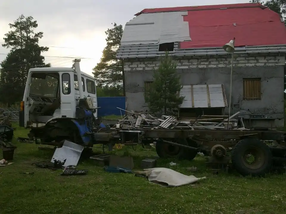 Посмотрев, объявления на различный сайтах по продажам, увидели что есть авто, стоит в 500 км. от дома, уже 2-3 года точно, по приемлемой цене 30,000 руб, было решено, что нужно брать. Приехав, увидели торчащую кабину в сугробе, потихоньку собрались заводить, машина завелась как ни странно без проблем, уже тогда подумали что машина мало ездила т. к. и кабина была в неплохом состоянии. Но решили не рисковать и не ехать сразу на ней, изготовили сцепку и притащили домой.