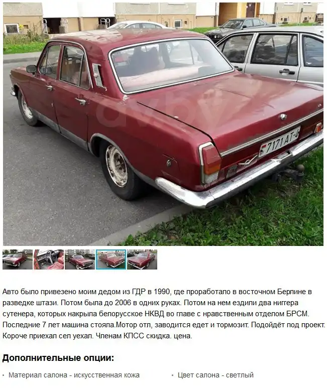 Когда видишь в сети подобные объявления, становится действительно интересно и хочется глянуть не только на сам автомобиль, но и на его хозяина. Читая такие описания, можно запросто написать сюжет для кинофильма или книги, ведь если бы все это в действительности не произошло с автомобилем, придумать такое было бы непросто.