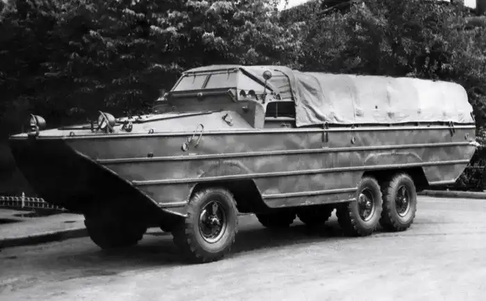 «МАВ» расшифровывалось как Малый Автомобиль Водоплавающий. Эту оснащенную четырехцилиндровым двигателем от «Победы» и трансмиссией и подвеской от ГАЗ-69 машину начали выпускать в 1953 году. По воде ГАЗ-46 передвигался с помощью гребного винта. Назначение вполне стандартное: переправа десантников, инженерные работы на воде и прочие военные миссии. Модель была скопирована с американского Ford GPA и просуществовала до 1958 года.