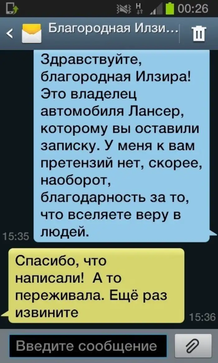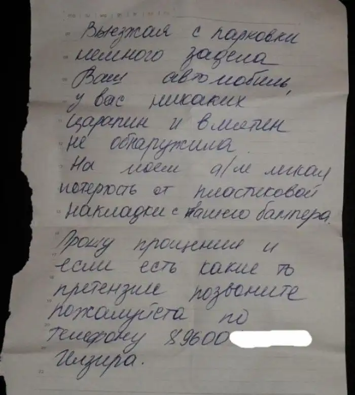 Не обнаружив никаких повреждений на своей машине, он решил связаться с девушкой, оставившей записку.