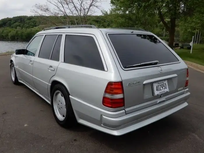 Под капотом находится модифицированный 3.2-литровый 6-цилиндровый двигатель M103. Среди других изменений от тюнинг-ателье AMG — модифицированная трансмиссия, дифференциал повышенного трения и спортивная подвеска. До 100 км/ч универсал разгоняется за 7 секунд, а максимальная скорость составляет 255 км/ч. Неплохо для старичка, не правда ли?