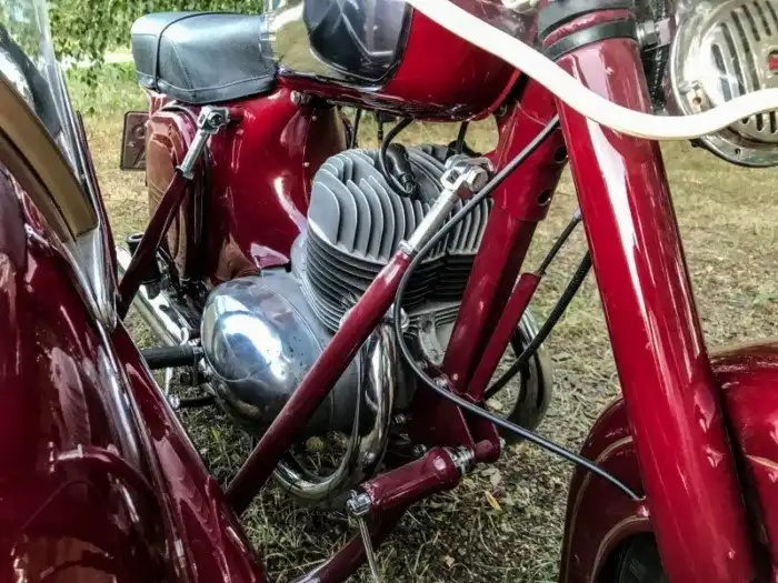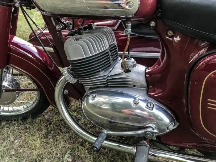350-кубовый 2-цилиндровый 2-тактный двигатель Jawa выдает 17,7 л.с. и в отрегулированном состоянии удивляет плавностью работы и приятным звучанием. В советские годы, особым шиком среди владельцев Jawa был запуск мотора рукой.