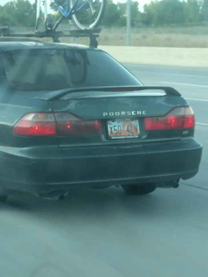 Игра слов: «Porsche» (марка автомобиля) и «poor» — (от англ.) «бедный, жалкий».