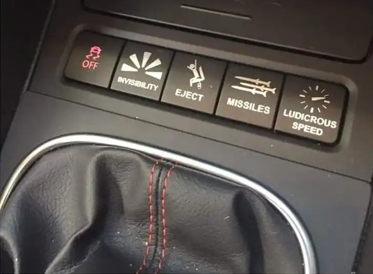 Слева направо: «Выключить», «Невидимость», «Катапультировать», «Ракеты», «Смехотворная скорость».