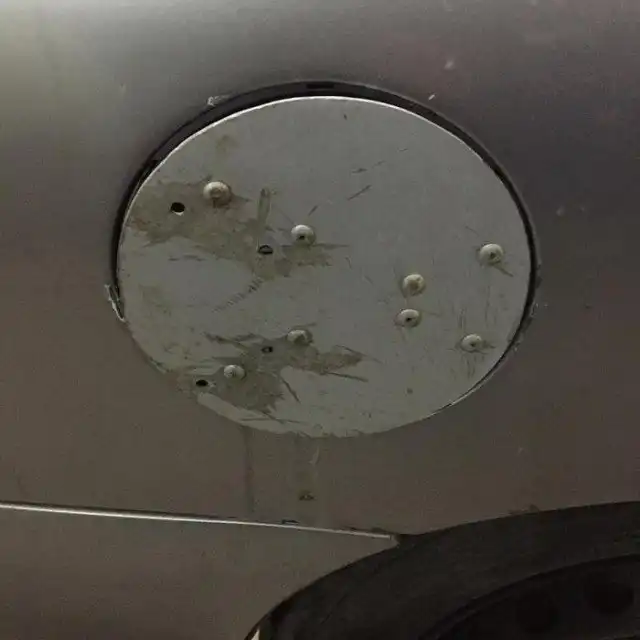 Мужик апгрейдил защелку бензобака и теперь слить бензин с его колымаги можно только вооружившись болгаркой.