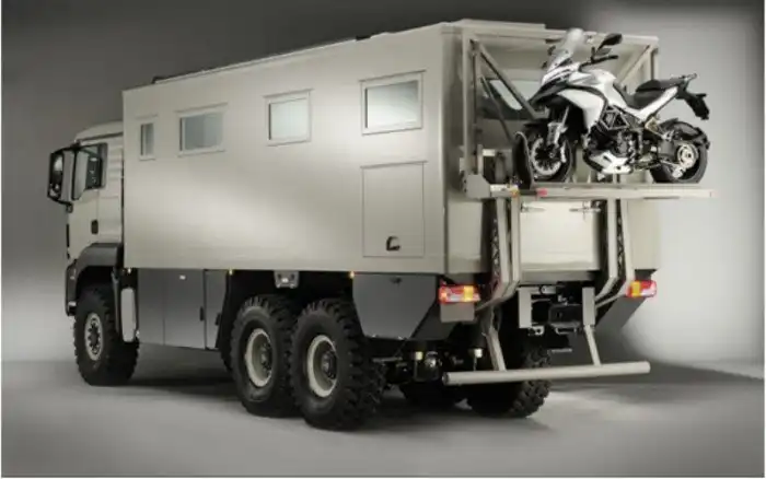 Global XRS 7200 – полноценный грузовик, при помощи которого можно, как говорят его авторы, пережить любой из возможных сценариев апокалипсиса. Жилой модуль трейлера вмещает в себя кухню, спальню, туалет и душ. Резервуары с запасом воды, холодильник с морозильными камерами, резервные аккумуляторы и газовый баллон гарантируют, что даже в самом долгом путешествии вы не будете испытывать никаких лишений.