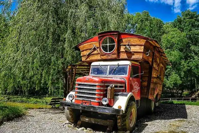 Дома-грузовики не очень популярны в нашей стране, но на западе они стали очень популярны благодаря влиянию хиппи. Хоть подобные дома и не очень практичны, хаус-траки до сих пор пользуются спросом в Новой Зеландии и Австралии, несмотря на то, что мода на них в США и Британии уже довольно давно прошла.