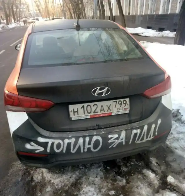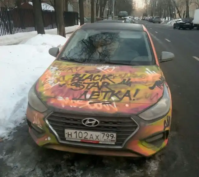 Автор этого поста пишет, что собрался прокатиться на автомобиле каршеринга, но подойдя к автомобилю обнаружил, что кто-то уже решил добавить ей красок.