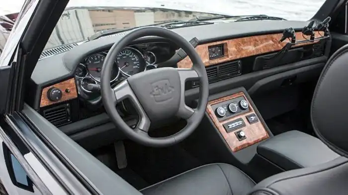 Дело в том, что состояние родных ЗИЛовских агрегатов оставляло желать лучшего и времени на их восстановление просто не было, т.к. необходимых запчастей давно уже никто не выпускает. Вынужденным решением и стали шестилитровый двигатель V8 мощностью 353 л. с. в паре с шестиступенчатым «автоматом» от американского пикапа.