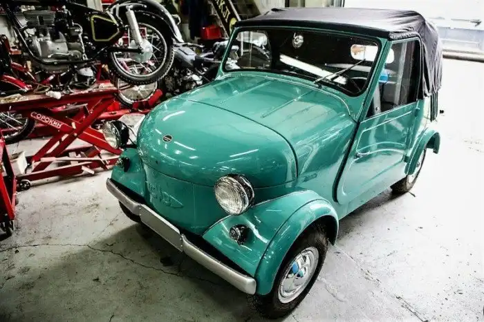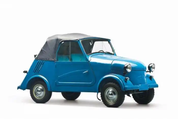 Двухместное крошечное авто имело длину всего 2,6 метра, а ширина его достигала отметки в 1,3. Вес такой заднеприводной «коляски» – 425 килограммов, а ёмкость топливного бака — 12 литров.