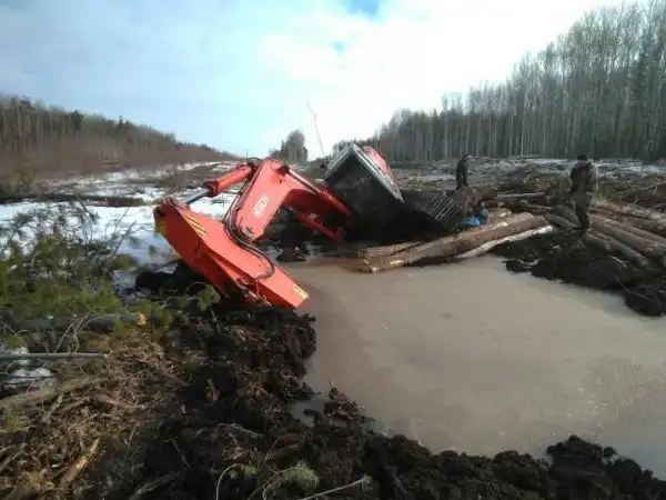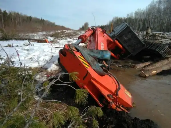 Ох нелегкая это работа - быть оператором экскаватора в начале весны. Тяжелая техника может в любой момент увязнуть в грязи, как и произошло в этом случае. Другие машины сразу пришли на помощь, не оставив собрата в беде, и помогли ему выбраться.
