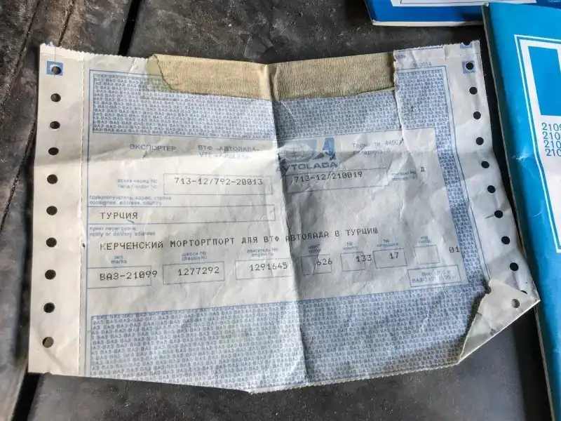 Причем эта Samara оказалась еще и в экспортном исполнении, о чем свидетельствует подкапотная табличка на английском языке, дополнительная табличка с картой комплектации, а также бортовая литература на английском языке. Судя по транспортной накладной, которая лежала в бардачке, машина предназначалась для внешнеторговой фирмы "Автолада" в Турции, а переправляли ее через Керченский морторгпорт.