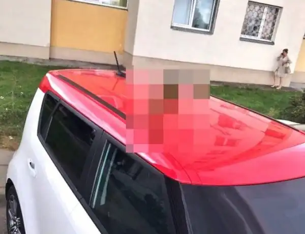 Выйдя во двор к любимой машине, никто не хочет увидеть на её крыше «сюрприз». Однако автору данных фотографий не повезло.