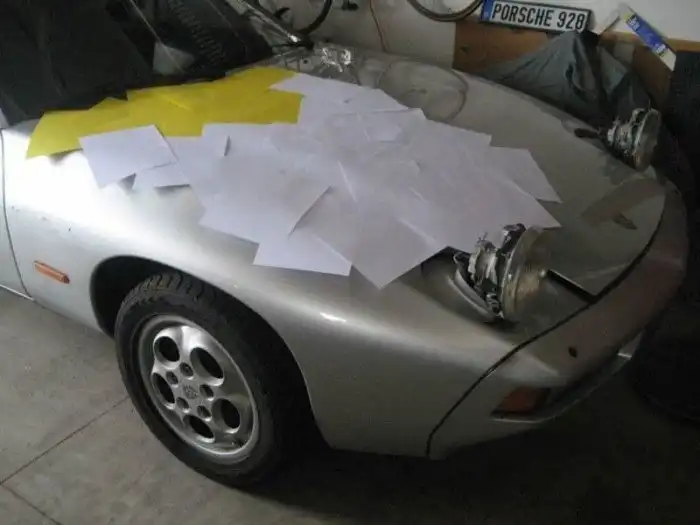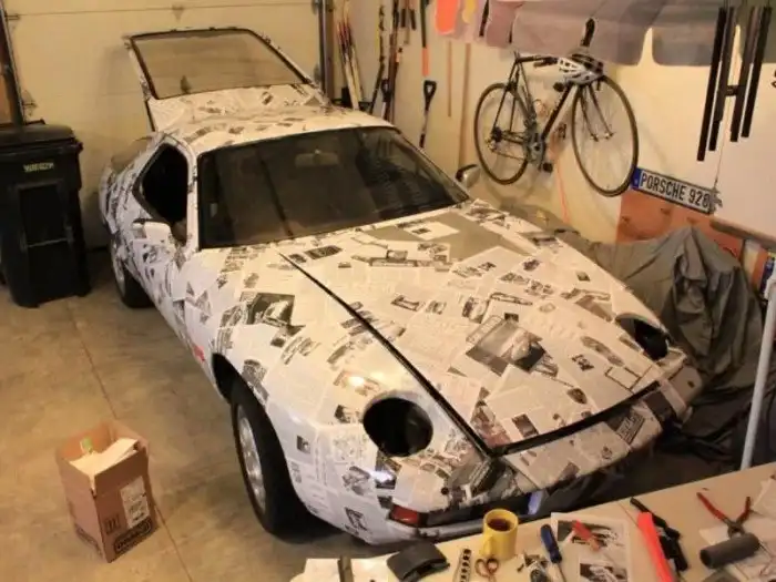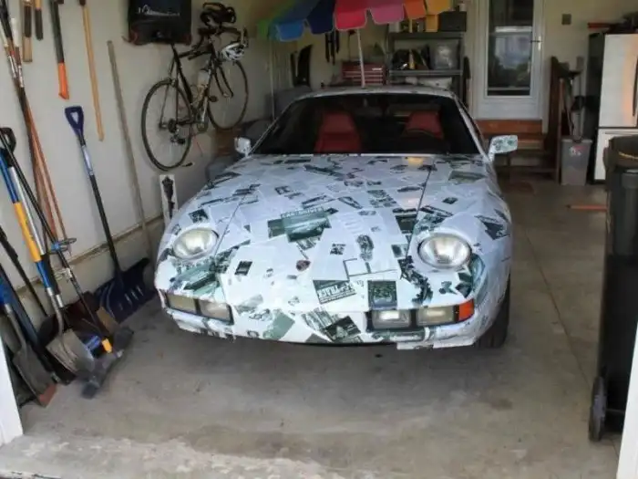 Возникает вопрос: как привлечь внимание тусовки поклонников Porsche, владея не канонизированным 911-м, а не оправдавшим надежд 928-м, еще и в не идеальном состоянии?! Мичиганский художник и энтузиаст Porsche Пол Груше купил свой 928 в 2011 году. Разобравшись с техническими неполадками, Пол решил превратить Porsche в Art Car, обклеив автомобиль журнальными статьями, опубликованными в 1977 — 1978 годах.