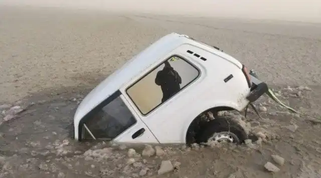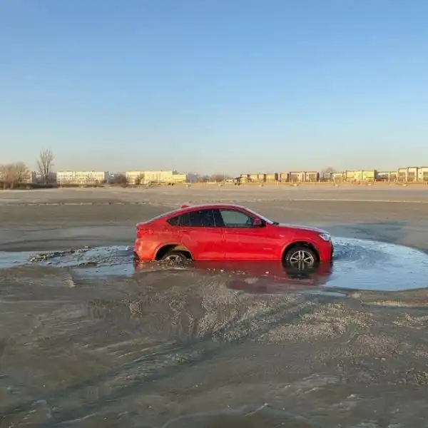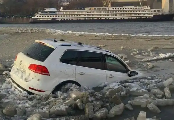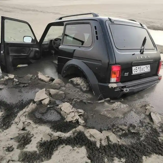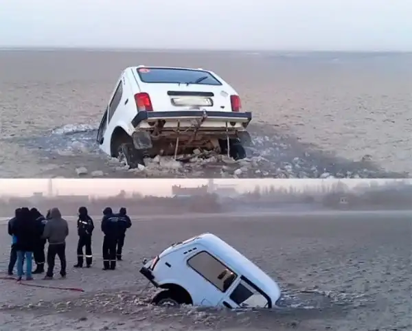 Отечественная Нива провалилась под лед Таганрогского залива после того, как водитель решил провести тест-драйв. Тонкий лед оказался слабее, поэтому машина перешла в разряд «утопленницы».