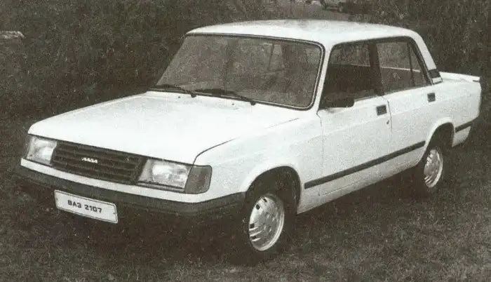 Ещё один попавший в серию проект — седан ВАЗ-2107 с оригинальным дизайном передка. На конвейер встал более консервативный вариант «семёрки» с прямоугольными фарами и решёткой радиатора.