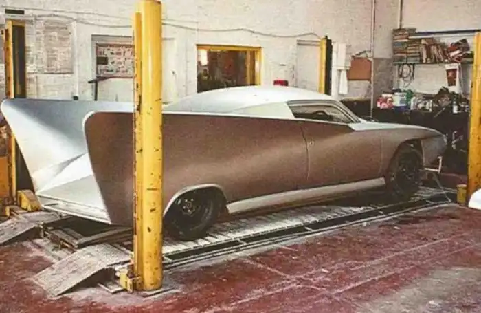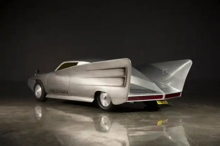Бэтмобиль? Неизвестный американский концепт эпохи "детройтского барокко"? Декорация к съемкам фантастического фильма 80-х? Последнее предположение будет, пожалуй, ближе всего к действительности, хотя все эти гипотезы попадают, что называется, "в молоко".
