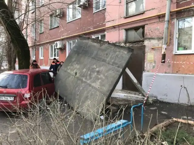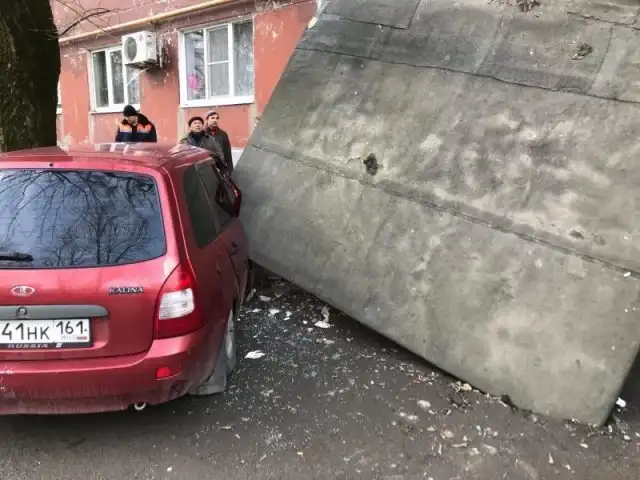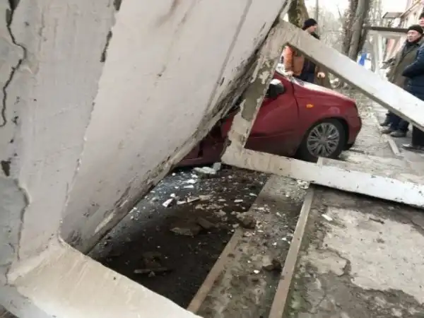 Бетонный козырек свалился прямо на переднюю часть машины, открепившись от стены. Произошло это, как сообщается, в Таганроге. К счастью, в машине не было людей, поэтому никто не пострадал. Кроме «Лады». Вот поэтому и не стоит в наших городах парковаться у подъездов...