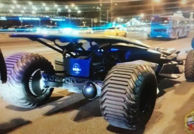 Печальным итогом закончился вояж столичного водителя на самодельном «бэтмобиле», которого вчера остановили в центре Москвы. Автомобиль, стоимостью 55 миллионов рублей, сотрудники ГИБДД решили изъять.