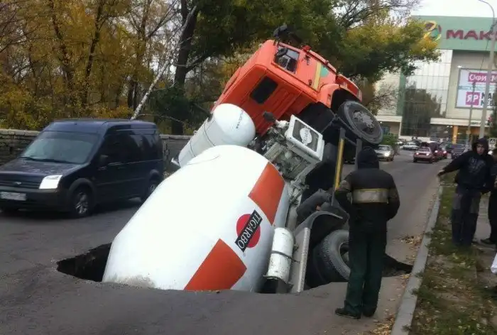 5. Иногда причиной обвала асфальта может быть авария на сетях Водоканала, ливень и дорожные работы