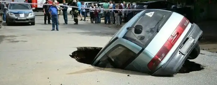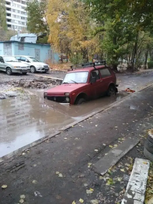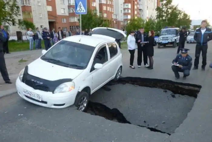 14. Из-за провала асфальта даже припаркованная машина, в которой никого нет, может провалиться в яму