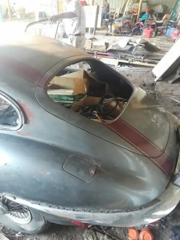 Если вы любитель старых автомобилей, то этот экземпляр вам точно понравится. На фотографиях показан Jaguar E-type, выпущенный в 1969 году. Машина, как сообщал продавец, выставивший ее на аукцион, не на ходу. И кузов, окрашенный в серебристый цвет, сохранился не очень. Кроме того, Jaguar не на ходу. Однако никуда не делись узнаваемые линии автомобиля, которые выглядят вполне актуально даже в наши дни.