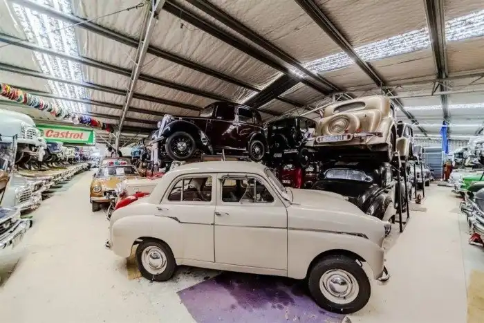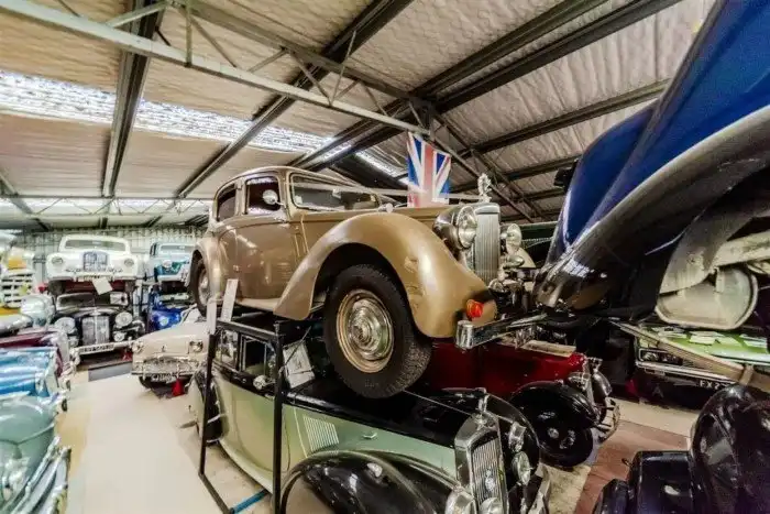 Есть более тридцати Morris Minor, а также куча Vauxhall, Hillman и Humber. Даже на фотографиях мы никогда не видели столько машин в одном месте, буквально наваленных одна на другую. Спортивных автомобилей довольно мало — MGB GT, Spitfire и Austin-Healey 100/4.