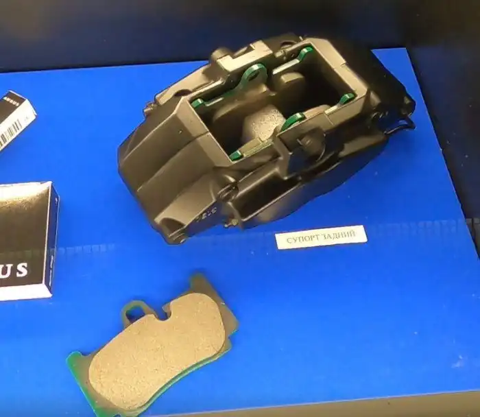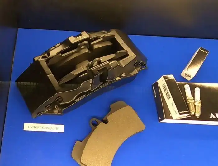 Тормоза для AURUS разрабатывали специально. Спереди и сзади мощные диски и суппорта. Смотрим фото чуть ниже.