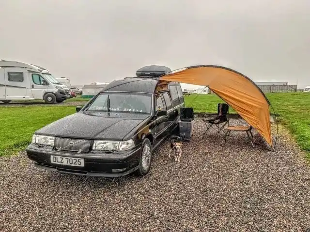 24-летняя Шеннон Орр и 31-летний Иэн Камерон из Уоррингтона удивляют многих путешественников, когда приезжают на специализированные кемпинги. Дело в том, что пара купила не просто дом на колесах или прицеп, а самый настоящий катафалк — Volvo 960. Один переделали его в подобие кемпера и отправились путешествовать, что выглядит действительно странно.