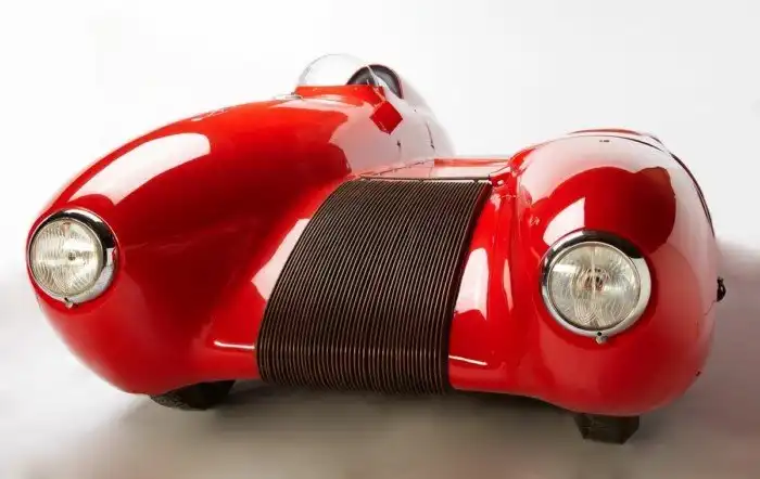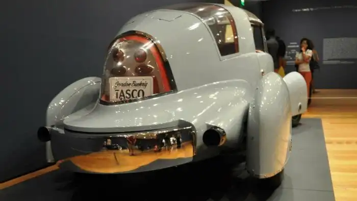 Дизайнеры автомобилей после Второй мировой войны имели возможность создавать что-то особенное и неповторимое. Отличный пример Tasco, которым создал известный промышленный дизайнер Гордон Бьюриг. Он в значительной степени заимствовал авиационный стиль, поэтому этот спортивный автомобиль выглядит несколько странно. Можно сказать не заимствованный, а скорее полная имитация.