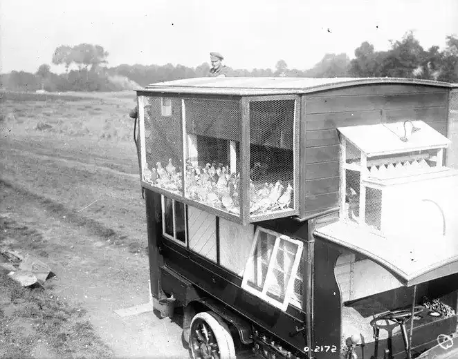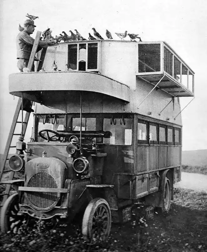 Для перевозки большого количества птиц использовались специальные мобильные экипажи, так называемые подвижные голубятни. Изначально это были конные прицепы, а затем двухэтажные лондонские автобусы типа «В». Двухэтажные автобусы переоборудовали для новой задачи; пассажирские сиденья убрали на обоих этажах, передние окна закрыли ставнями, а ограждение второго этажа заменили окнами, которые можно было накрыть сеткой, чтобы птицы могли вылетать одновременно в нужное время.