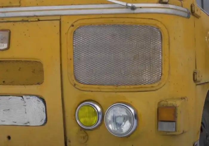Для наглядности мы покажем, как должно было быть. Это уже ЛАЗ 699, и у него тоже есть алюминиевый молдинг, внутрь которого помещён кантик из поливинилхлорида (ПВХ):