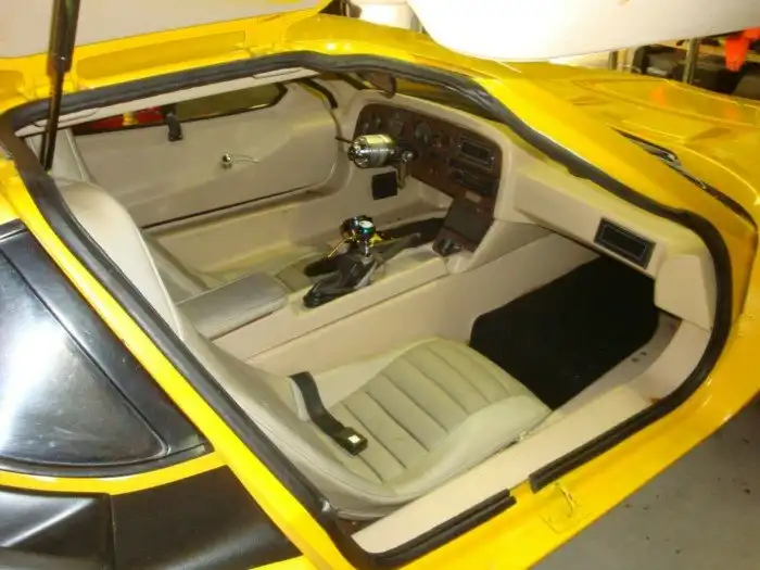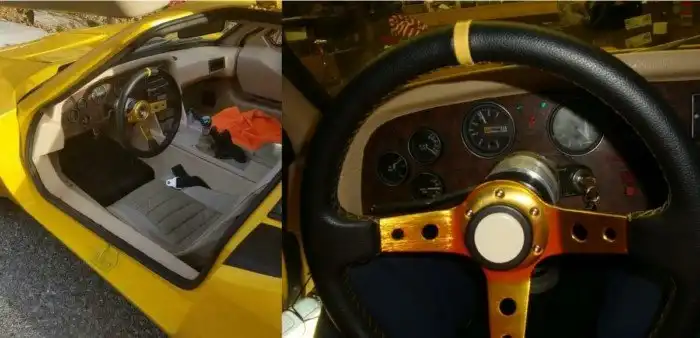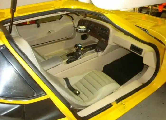 Кажется, пробираться в эту машину не очень-то удобно. Согнуться придется буквой зю, но зато салон шикарен. Он действительно напоминает суперкары семидесятых.