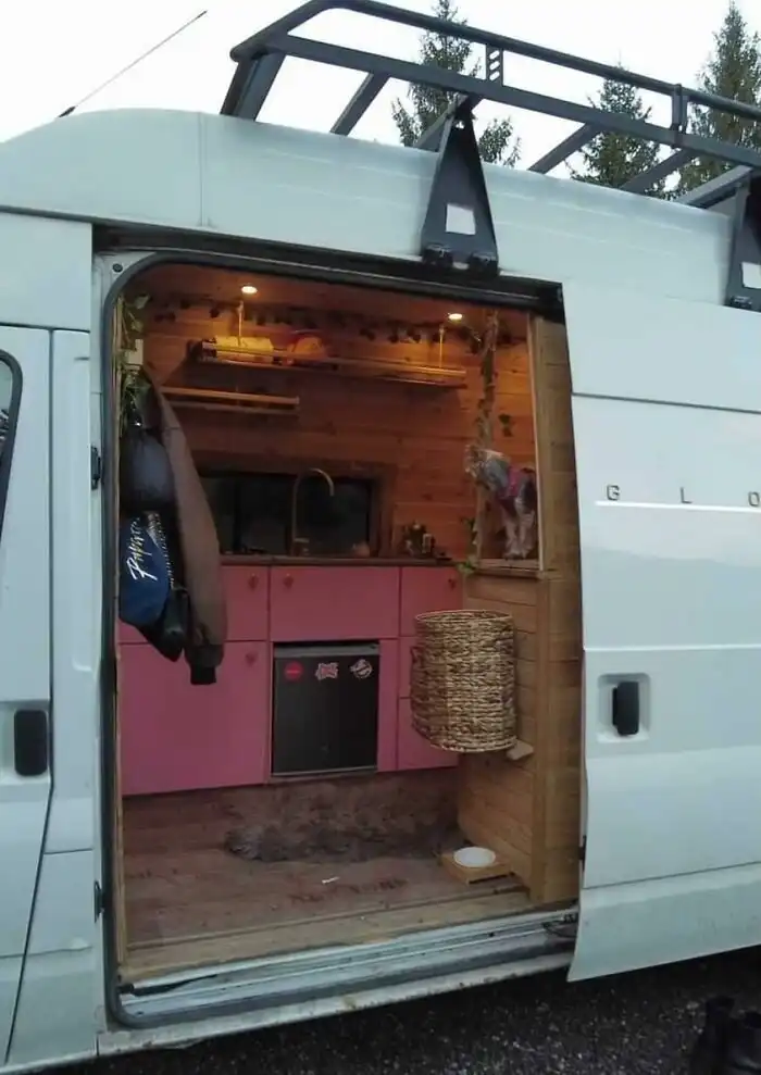 Вот как это произошло с ее собственных слов: «Итак, я наткнулась на идею жизни в крохотных пространствах и жизни в фургоне на YouTube почти 3 года назад, и влюбилась в нее. Я узнала о доме на колесах, когда в моей жизни наступила черная полоса: моя бабушка (с которой я была очень близка) только что умерла, и это заставило меня осознать, что жизнь слишком коротка, чтобы жить ради того, чтобы платить по счетам; я хотела, чтобы моя жизнь была приключением! Тогда я решила, что, живя в фургоне, я смогу избавиться от долгов, смогу жить где угодно (приключение!), и быть почти полностью самодостаточной, что невероятно, особенно в наше время».