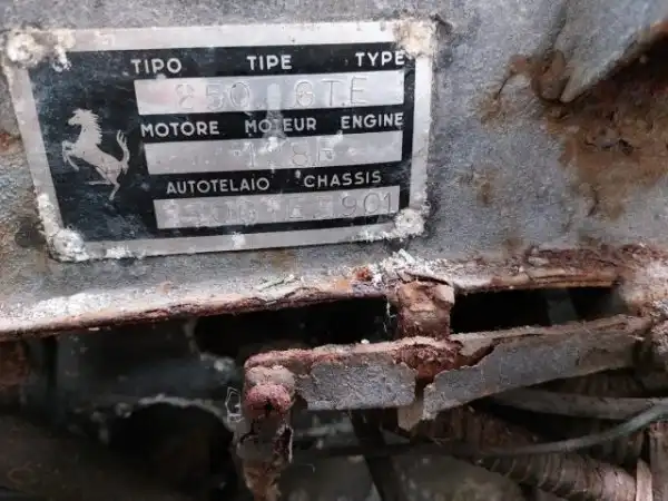 Аукционный дом Brightwells рассказал: "Как можно видеть, время и плохое хранение не были добры к бедному старому Ferrari, но, если не считать передних сидений, корпуса коробки передач/колокола, головок и карбюраторов, он выглядит в основном законченным.