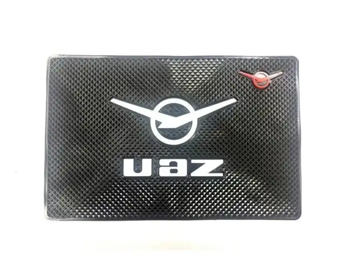 Противоскользящий силиконовый коврик UAZ на торпеду. Этот аксессуар прикрепляется к любым поверхностям. На нем можно закрепить смартфон, навигатор, планшет, антирадар либо любой другой предмет.