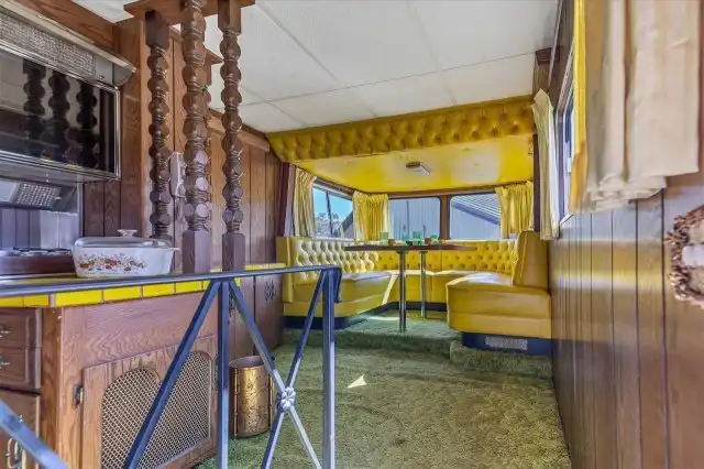 Мощь и сила чувствуется в этом автомобиле. Его построили в 1974 году фирмой Edler&Company из Иллинойса. В мире есть еще две подобных "игрушки": у второго отсек для перевозки лошадей, а у третьего — для лодки. Внутри все, будто застыло в 70-х: отделка из дерева, винтажная мебель, ретро-обои и зеленый ковролин на полу. Есть двуспальная кровать, душ, гостиная, кухня, а также большая обеденная зона с угловым диваном. Стоимость такого авто - 120 000 долларов (около 8,5 млн рублей).