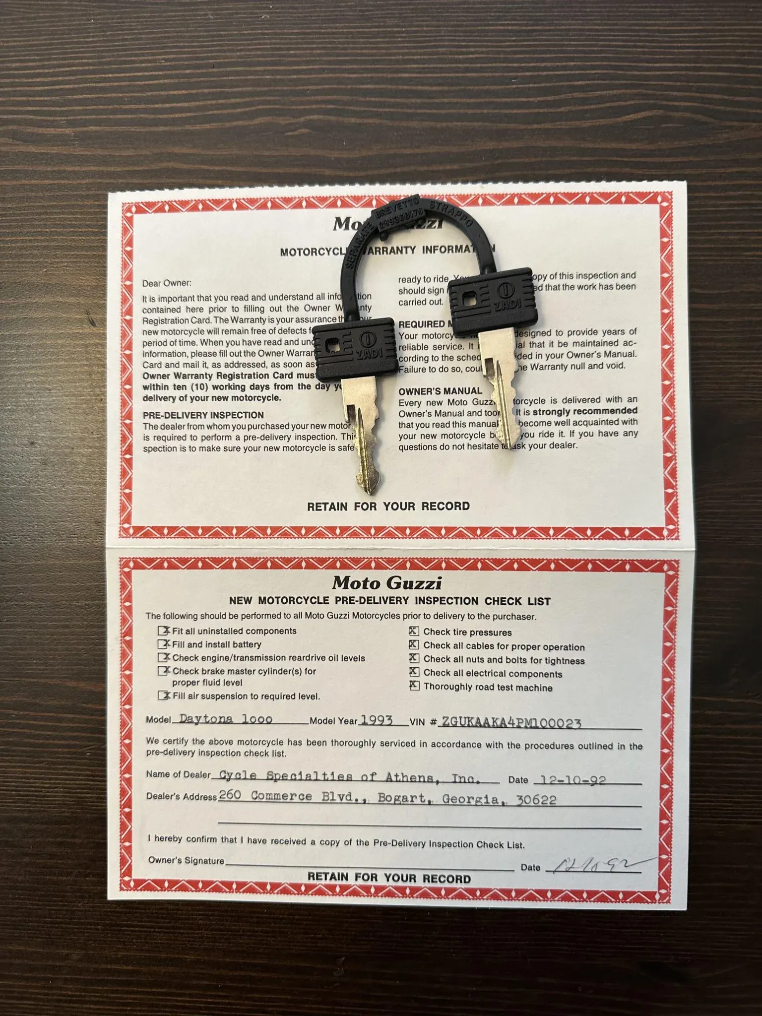 Байк отгрузили дилеру в штате Джорджия в ноябре 1992 года. Причины, по которым его так и не начали эксплуатировать, неизвестны. Внешнее состояние мотоцикла идеальное, однако перед первой поездкой его потребуется основательно подготовить.
